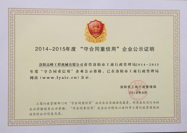 <<返回上一頁(yè) 2014-2015守合同重信用企業(yè)1 發(fā)布時(shí)間:2021-02-06點(diǎn)擊:1750 上一篇:洛陽(yáng)市科學(xué)進(jìn)步獎(jiǎng)證書 下一篇:2014-2015守合同重信用企業(yè)